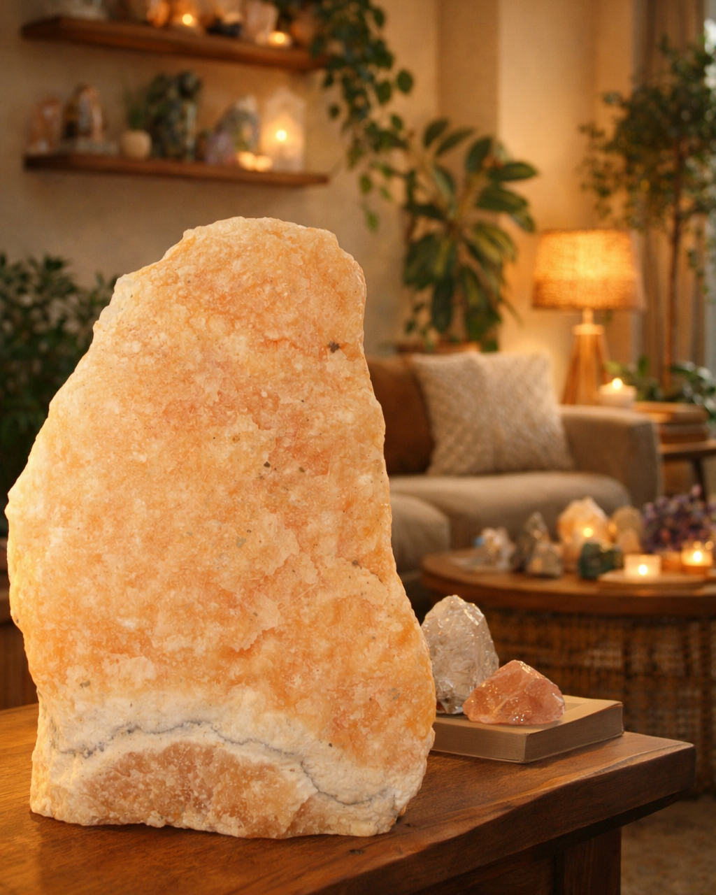 ✅ Cuidado Especial: A Calcita é um mineral macio e sensível. Evite o contato com a água e limpe-a preferencialmente com incenso ou sobre uma placa de Selenita.