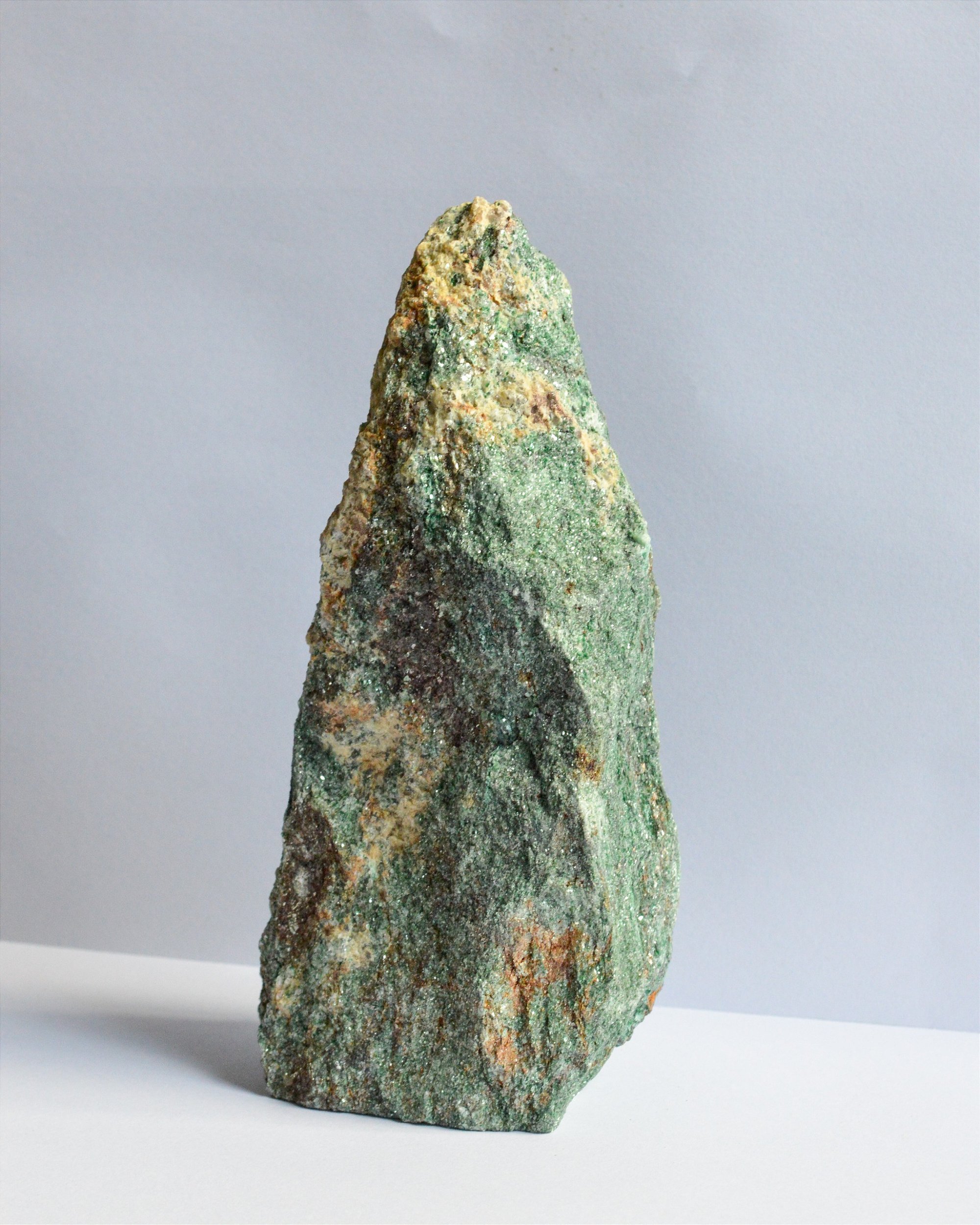 Conhecida como a "Pedra das Fadas", a sua energia está profundamente ligada aos reinos elementais e à cura da Mãe Natureza. É um cristal de renovação que ajuda a equilibrar o excesso de responsabilidade, ensinando-nos a sermos úteis sem nos tornarmos "vítimas" ou salvadores dos outros. A Fuchsita atua no Chakra Cardíaco, trazendo leveza ao coração e ajudando a canalizar informações sobre tratamentos de saúde e bem-estar, sendo por isso muito apreciada por terapeutas e profissionais de cura.